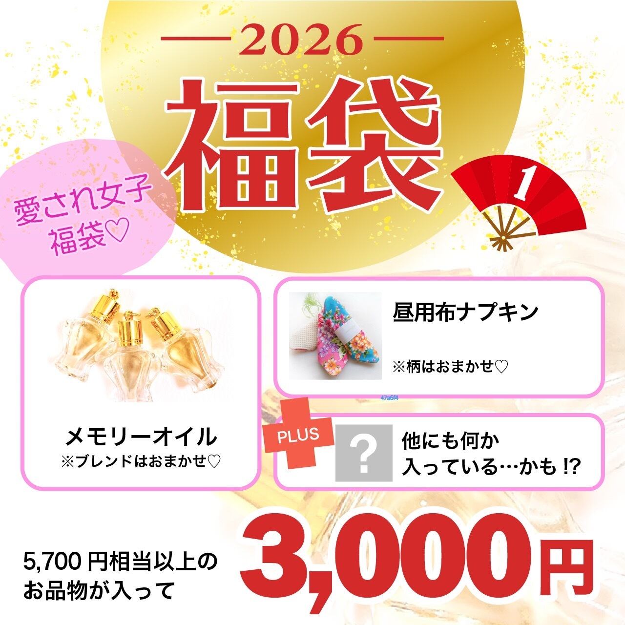 【1/10〜順次発送いたします】 毎年恒例福袋! ・メモリーオイル ・布ナプキン and他にも何か入ってるかも? 5700円以上相当の内容で3000円 とってもお得になっています!